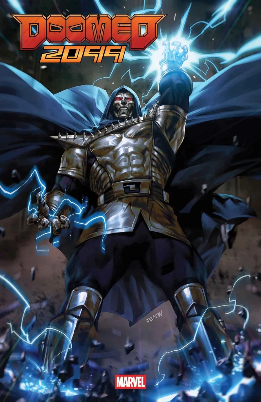 The present-day world already bows to Doctor Doom’s rule, but the future remains uncertain. Doomed 2099 introduces ​Doctor Doom 2099, a mysterious and infamous variant who crashes into the current timeline to challenge his past self. As the two Dooms collide, their clash will send shockwaves across the multiverse, igniting a war that threatens to unravel reality itself.
