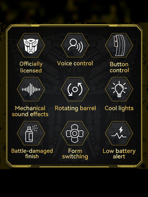 • Authentic Finish – Classic Bumblebee yellow metallic texture with handcrafted battle-worn painting.