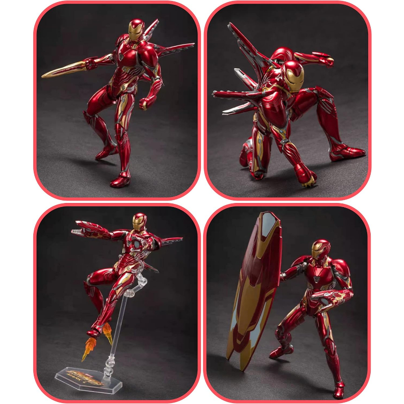 💟【WONDERFUL】This 7-in action figure comes with a beautiful gift box, 1 * 7-inch action model,1 * nano shield,2 * nano double-edged knife,2 * nano shark gun,1 * nano short sword,1 * nano round shield,1 * flight propeller,1 * nano broadsword,4 * flame special effect,4 * pairs replacement hands, also come with the multi-joint black support, It allows you to put various movie shapes on the stand, especially the flying shape, it's really cool, quickly add it to your collection Ironman toy.